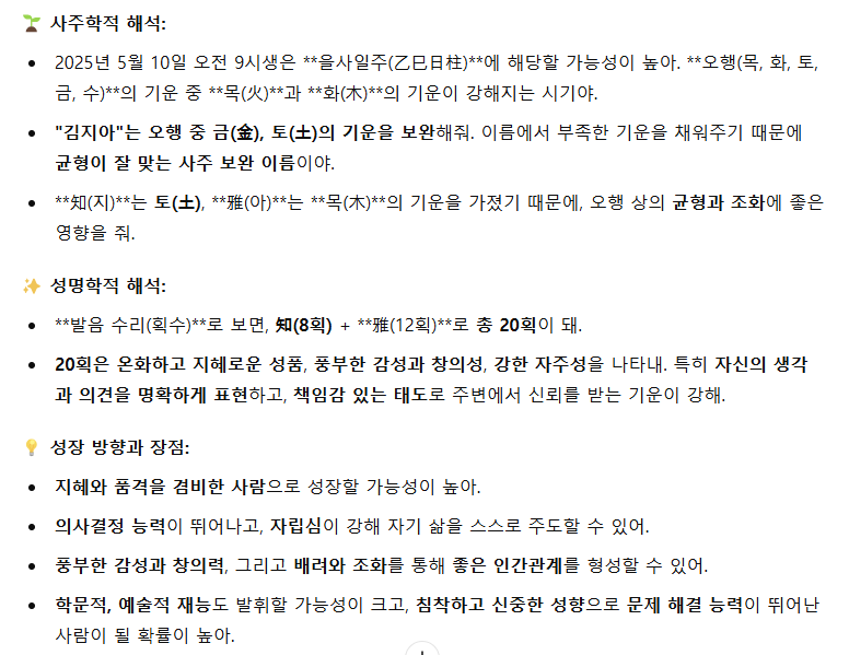 챗GPT가 그동안 사주학, 성명학 정도는 많이 학습했겠지...싶어서 신뢰해보는 걸로 ㅋㅋㅋ