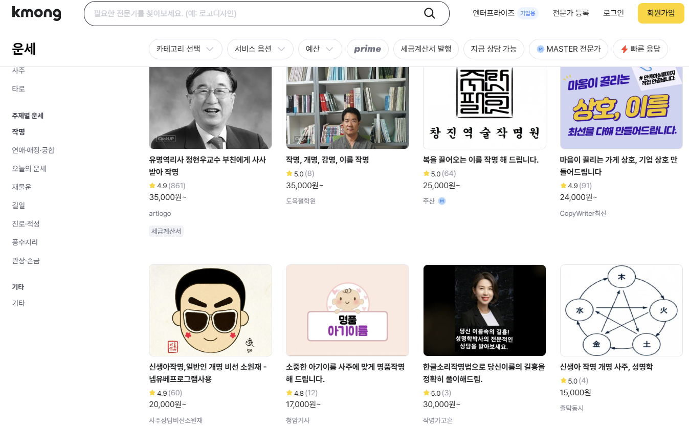 크몽에 접속해보니 저렴한 곳은 15,000원, 가격대가 있는 곳은 35,000원 정도 가격이 책정되어 있는 듯하다.