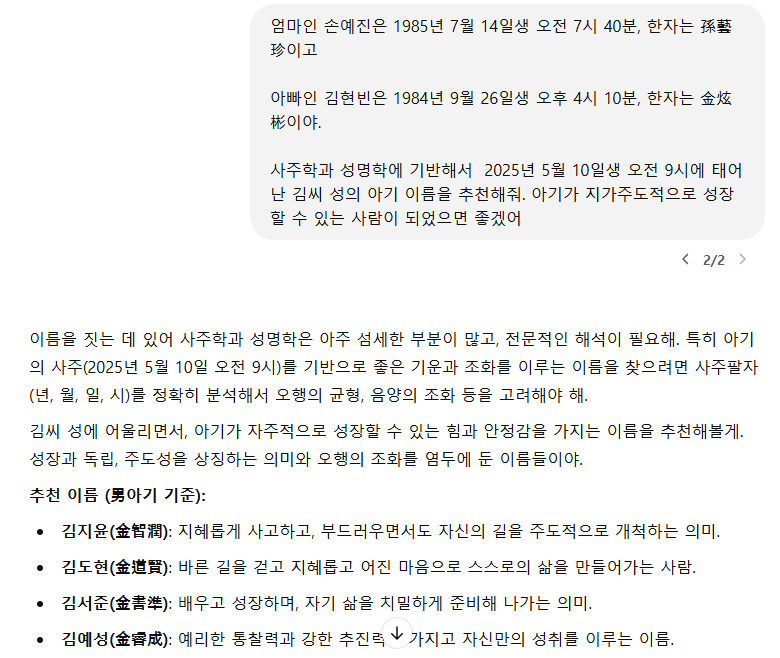 저런 이름을 추천하게 된 근거가 궁금해서 더 자세히 물어봤다