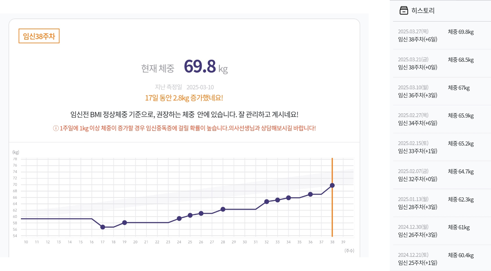 25주차 쯤 되면서 조금씩 원래 몸무게 회복하더니 지금은 임신 전보다 10키로 정도 더 증가했답니다!